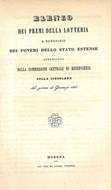 Elenco dei premi della lotteria a benefizio dei poveri dello stato estense annunziata dalla commissione centrale di beneficenza colla circolare del giorno 14 gennajo 1854