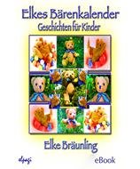 Elke Bräunling: Elkes Bärenkalender - 12 Geschichten rund ums Jahr mit dem kleinen Bären. Fröhliche, pfiffige und auch zum Nachdenken anregende Geschichten. Jeder Monat hält für den kleinen Bären ein Abenteuer oder eine Überraschung bereit. So trifft er im Schnee einen verlassenen Plüschbären, er unterhält sich mit einem hochnäsigen Schneemann und begrüßt eines Märztages ein seltsames Tier, das sich 'Frühlingsbote' nennt. Er findet seltsame Glitzerdinger und 'Luftballonflugmaschinen', unterhält sich mit den Frühlingsblumen, dem Donnermännlein, den Wolken, einem seltsamen Herbstapfel und anderen Gefährten, die ihm im Laufe des Jahres im Wald und auf der Wiese rund um die Bärenhöhle begegnen. Alle Geschichten: 1. Der kleine Bär und der Plüschteddy - Januar 2. Der kleine Bär und der schöne Schneemann - Februar 3. Der kleine Bär und der Frühlingsbote - März 4. Der kleine Bär und das Glitzerding - April 5. Der kleine Bär und der Blumenstrauß - Mai 6. Der kleine Bär und das Wolkentheater - Juni 7. Der kleine Bär und das Donnermännlein - Juli 8. Der kleine Bär und der Bärenfreund - August 9. Der kleine Bär und der Luftballonstrauß - September 10. Der kleine Bär und der Erntezauber - Oktober 11. Der kleine Bär und der Herbstlaubberg - November 12. Der kleine Bär und der Zauberwald - Dezember