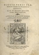 Elogia veris clarorum virorum imaginibus apposita. Quae in Musaeo Ioviano Comi spectantur. Addita in calce operis Adriani Pont. vita. Venetiis, apud Michaelem Tramezinum, 1546. Legato con: NAUGERIUS A. Orationes duae, carminaque nonnulla. Impressum Veneti