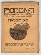 Bergamo, Istituto Italiano d'Arti Grafiche, 1916, un fascicolo in-8, br. editoriale, con piccola illustrazione sulla copertina anteriore, pp. numerate da 321 a 400. Con illustrazioni n.t. e su tavole f.t. Dall'indice: V. Pica "Edoardo Dalbono illustratore. (Con 33 illustrazioni)", Raffaele Calzini "L'Esposizione dell'Associazione Italiana aquafortisti e incisori a Londra (con 23 illustrazioni)", A. Vinardi "In memoria di un grande affreschista: Paolo Gaidano, (con 18 illustrazioni). Fascicolo intonso.