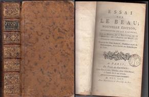 *** Autore: ANDRÉ, YVES MARIE (PERE ANDRÉ) Titolo: ESSAI SUR LE BEAU NOUVELLE EDITION AUGMENTEE DE SIX DISCOURS SOUS LE MODUS, SUR LE DECORUM, SUR LES GRACES, SUR L`AMOUR DU BEAU, SUR L`AMOUR DÉSINTÉRESSÉ Casa Editrice: A PARIS CHEZ CRAPART LIBRAIRE isbn: 2020060253084 Anno edizione: 1770 - MDCCLXX Copertina: RIGIDA Pagine: 501 Misure: 10,5 X 17,5 cm Descrizione: LEGATURA IN PELLE, NERVATURE AL DORSO E TITOLI E FREGI IN ORO, PICCOLA PELATURA IN QUARTA DI COPERTINA, PAGINE ROSSE AL TAGLIO, TIMBRO DI POSSESSO, NORMALI SEGNI DI USURA SULLA COPERTINA, CONDIZIONI BUONE/OTTIME. ***