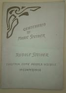 In 8', br. ed. pp. 53, ritratto di Marie Steiner a p. 10per il centenario della nascita di Marie Steiner Von Sivers. Conferenza del 24 giugno 1924, dal corso omonimo tenuto a Dornach/Svizzera, alla Libera Universita' di Goetheanum; acclusi 4 fascicoli, i numeri 1,2,3, e 4 del Gruppo medico Antroposofico Italiano-Igiene sociale: La televisione nell'eta' infantile, Antroposofia e medicina, Regolazione del concepimento e liberta' umana, La terapia artistica-come prevenire e curare i danni della civilta' con un attivita' artistica. Ulteriore dattiloscritto, con sottolineature e note a margine-Conferenza di Rudolf Steiner del 12 giugno 1921, traduzione di Ermanno Janach e Vittoria Sorge, estate 1980 Complessivamente in buono stato, bruniture e segni del tempo.