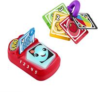 I bambini possono unirsi a una serata di divertimento in famiglia con il giocattolo Ridi e Impara Baby UNO? Numeri e Colori di Fisher-Price! Questa versione di UNO?, a misura di bebè, include 5 carte per i giocatori più piccoli da inserire nel lettore per farlo illuminare con tante luci e musiche, suoni e frasi divertenti mentre imparano i numeri, i colori e gli oggetti raffigurati su ogni carta. Inoltre, grazie al pratico anello per collegare le carte, potete portare con voi il suo 'gioco' preferito ovunque andiate! Usa il pulsante del globo per selezionare una lingua: inglese, italiano, portoghese o spagnolo castigliano.