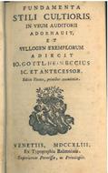 Fundamenta stili cultioris in usum auditorii adornavit, et syllogen exemplorum adiecit Io. Gottl. Heineccius Ic. et Antecessor. Editio Veneta, prioribus emendatior