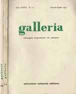 Annata incompleta 1977, anno XXVII, composta da 2 fascicoli, della rassegna bimestrale di cultura: " Galleria ", diretta da Jole Tognelli, Mario Petrucciani e Leonardo Sciascia, disponibili numeri doppi 1/2 di gennaio-aprile e 5/6 di settembre-dicembre 1977. Copertine morbide monocolori, appena scurite, ombrate da veli di polvere, punteggiate da prodromi di ossidazione e segnate da sgualciture alle punte e ai bordi, da abrasioni da contatto e da comuni imperfezioni ai dorsi, gli interni delle riviste risultano in buone condizioni, malgrado la modesta ingiallitura dei fogli. N. pag. 88, n.n..