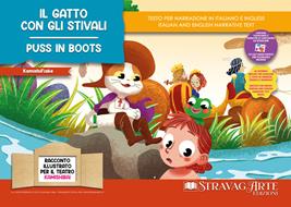 Nell’adattamento kamishibai di StravagArte, la famosa fiaba del Gatto con gli Stivali prende vita con una narrazione vivace che cattura l'attenzione e fa divertire i lettori. Con situazioni comiche, dialoghi esilaranti ed illustrazioni colorate e dettagliate, la storia racconta le avventure di Carabattola, il figlio minore di un mugnaio, che eredita solo un gatto. Ma questo gatto non è ordinario: grazie alla sua astuzia, riesce a trasformare il suo squattrinato padrone in un ricco nobile, destinato a sposare la figlia del re. Un racconto buffo e ingegnoso che insegna come l'intelligenza e la furbizia possano cambiare il destino di una persona. La confezione include 10 tavole illustrate formato A3 con il testo bilingue italiano/inglese, in versione integrale per 5/10 anni e semplificata per 2/4 anni. Contiene anche burattini da ritagliare, flashcards per attività didattiche e un QR code per scaricare materiali educativi aggiuntivi. Età di lettura: da 4 anni.
