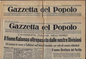 Annata incompleta composta da 2 uscite del periodico "Gazzetta del popolo" anno 1940 numeri 234 e 268 rispettivamente del 29 settembre e dell'8 novembre. Legatura in fogli. Pagine brunite dal tempo e fiorite presentanti segni di usura ai margini con piccoli strappi agli stessi. Da segnalare piccoli fori e tracce di abrasione sulle pieghe di posizione (una orizzontale ed una verticale) ad ambo i fascicoli -complicanti ma non impedenti la fruibilità-. Numero pagine 5/6 per fascicolo. Numero pagine complessive 11.