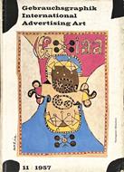 Volume n. 11, anno XXVIII, 1957 della rivista Gebrauchsgraphik. Copertina macchiata, stanca agli angoli, leggermente usurata al dorso. Pagine ben salde alla cerniera, con ampio margine, leggermente brunite, così come i tagli. Presente lieve fioritura ai tagli. Presenti numerose illustrazioni nel testo, sia a colori che in bianco e nero. Numero pagine 61.