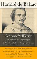 Dieses eBook: " Gesammelte Werke: 15 Romane, 27 Erzählungen, 2 Novellen, 2 Abhandlungen & Essays" ist mit einem detaillierten und dynamischen Inhaltsverzeichnis versehen und wurde sorgfältig korrekturgelesen. Honoré de Balzac (1799/1850) war ein französischer Schriftsteller. Sein Hauptwerk ist der rund 88 Titel umfassende, aber unvollendete Romanzyklus La Comédie humaine (dt.: Die menschliche Komödie), dessen Romane und Erzählungen ein Gesamtbild der Gesellschaft im Frankreich seiner Zeit zu zeichnen versuchen. Inhalt: Romane Das Chagrinleder (1831) Louis Lambert (1832) Der Landarzt (1833) Eugénie Grandet (1834) Vater Goriot (1834) Die Lilie im Tal (1835) Die alte Jungfer (1836) Verlorene Illusionen (1837-1843) Cäsar Birotteaus Größe und Niedergang (1838) Glanz und Elend der Kurtisanen (1838-1844) Der Dorfpfarrer (1839) Die Frau von dreißig Jahren (1842) Junggesellenwirtschaft Kehrseite der Geschichte unserer Zeit Lebensbilder: Band 1&2 Erzählungen Der Ball von Sceaux (1830) Sarrasine (1830) Vendetta (1830) El Verdugo (1831) Die Börse (1832) Die Grenadiere (1832) Oberst Chabert (1832) Ein Drama am Ufer des Meeres (1835) Seraphita (1835) Facino Cane (1836) Die Messe der Gottlosen (1836) Die Entmündigung (1836) Katharina von Medici (1836) Das Haus Nucingen (1838) Die Geheimnisse der Fürstin von Cadignan (1839) Eine Evatochter (1839) Die falsche Geliebte (1841) Eine Episode aus der Zeit der Schreckensherrschaft (1845) Tante Lisbeth (1846) Die Kleinbürger (1856) Die dreißig tolldreisten Geschichten: Band 1 bis 3 Tolldreiste Geschichten (Freie verkürzte Nachdichtung von Bierbaum/Riba) Der Diamant Die Königstreuen Der Auftrag Eine dunkle Geschichte Szenen aus dem Landleben: band 1&2 Novellen Adieu (1830) Lebewohl (1830) Abhandlung/Essays Physiologie der Ehe (1829) Physiologie des Alltagslebens