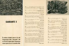 <p>Invito alla mostra personale alla Galleria Schettini, Milano 18-27 ottobre 1956</p> Cm 20,5x19,5. pp. 4. . Molto buono (Very Good). . . .