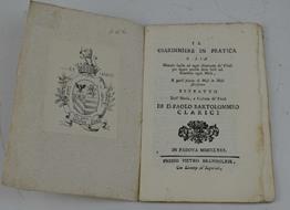 <p>Cm. 19, pp. (2) 37 (3). Leg. strettamente coeva in cartoncino alla rustica. Ottima conservazione. Ex libris nobiliare (Arrigoni degli Oddi).</p>