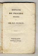 Capolago presso Mendrisio, Tipografia Elvetica, 1831, in-8 piccolo, br editoriale con titolo entro corona vegetale sulla copertina anteriore, pp. 104. Prima edizione svizzera, stesso anno della prima edizione italiana (Bologna, Masi, 1831). Qualche fioritura, difetti, molto leggeri, al dorso: buon esemplare.