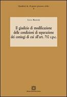 Il volume è dedicato all'esame del giudizio per la modificazione delle condizioni di separazione dei coniugi, disciplinato dall'art. 710 c.p.c. A fronte di un dato normativo ampiamente incompleto, si sono analizzati gli aspetti maggiormente problematici relativi a tale giudizio: i presupposti per addivenire alla modifica, lo svolgimento procedimentale nel richiamo alle forme camerali di cui agli artt. 737 ss. c.p.c., gli effetti del provvedimento di revisione ed i rimedi contro di esso proponibili. L'indagine (compiuta tenendo conto degli interventi di riforma risultanti dalle leggi 80/2005, 54/2006 e 69/2009) è svolta in modo differenziato in considerazione della materia in decisione, in particolare a seconda che vengano in evidenza le misure riguardanti i rapporti patrimoniali tra i coniugi ovvero le disposizioni relative ai figli.