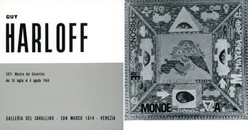 Pieghevole della 952ma Mostra della Galleria del Cavallino, Venezia, 24 luglio - 4 agosto1964. Testi dell'Artista in italiano e di Jacques Kermoal in francese. Con un'illustrazione in bianco e nero. Biografia con una fotografia dell'artista