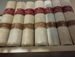 Librairie Hachette, 1920, opera in 7 volumi, copertine allegate, rilegature coeve con titoli in oro al dorso, piatti marmorizzati, ex-libris al piatto del primo volume, timbro di appartenenza ai frontespizi, firma alla seconda pagina del primo volume, legature solide, saltuariamente allentate, tagli bruniti, pagine pulite. Normali segni d'uso e del tempo. Buono (Good).