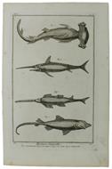HISTOIRE NATURELLE, Le Marteau - Le Requin - La Scie - l'Espadon - Original Antique Engraving - Diderot & d'Alembert - 1770