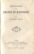 Buono stato. Legatura in mezza pelle, con titoli in oro al dorso, leggermente rovinata. Scritta di appartenenza sulla prima bianca. Etichetta di libreria sull'occhietto. Testo in francese. Narrativa Georges Price Historiettes de France et d'Espagne Calman
