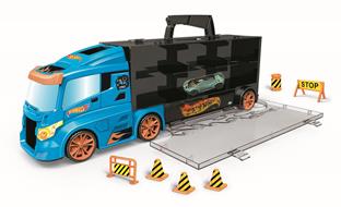 Valigetta bisarca porta veicoli apribile su 2 lati con pratica maniglia e scivolo per autoInclude 1 veicolo originale Hot Wheels e segnali stradali, funzionamento a ruote libere