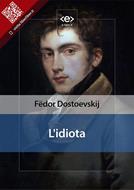 Dostoevskij scrisse questo romanzo tra il settembre del 1867 e il gennaio del 1869. Venne dapprima pubblicato a puntate tra il 1868 e il 1869 sul “Ruskij Vestnik” e successivamente in volume a Pietroburgo nel 1874. Il personaggio principale del romanzo è il principe Lev Nikolaevic Myškin, il quale ha potuto recarsi in Svizzera per curare l’epilessia grazie a un benefattore, versando lui stesso, ultimo discendente del suo casato, in pessime condizioni economiche. Tramite la figura del principe l’autore vuole trasmettere a chi legge una sorta di istanza ideale, narrativamente caratterizzata dalla «idiozia» del principe, che consiste in un atteggiamento di assoluta fiducia negli altri; forse la malattia, che gli ha inibito negli anni cruciali per la formazione del carattere una compiuta esperienza di vita, ha contribuito alla costruzione del suo ego in direzione di una pressoché totale ingenuità. Con questo espediente narrativo l’autore esprime la propria aspirazione a tratteggiare una figura umana che possa impersonare positivamente la soluzione del problema etico, così come aveva in mente.
