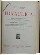 Titolo: IDRAULICA. BASI SCIENTIFICHE E APPLICAZIONI TECNICHE. Volume I - Parte seconda: Correnti in pressione - Correnti a superficie libera - Efflusso dei liquidi - Azioni dinamiche di correnti - Acque filtranti. - De Marchi Giulio. - Hoepli, - 1961