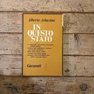 Alberto Arbasino, In qusto Stato. Garzanti, 1978. I edizione, Milano. Volume in buone condizioni, copertina leggermente rovinata all'angolo superiore destro. Costa di copertina leggermente rovinata. Pagine leggermente ingiallite. Presente timbro in rilievo sul foglio di guardia. Presenti alcune sottolineature.