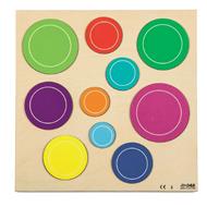 Tavola in legno naturale con tanti cerchi colorati da incastrare, ognuno di diametro diverso. Ideale per introdurre i bimbi ai concetti di grandezza e diametro, allena la sensibilità cromatica e stimola lo sviluppo della motricità fine.Interamente realizzato in legno.Tavola cm 24.5x24.5Contenuto: tavola + 10 incastri