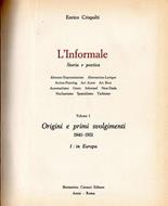 8vo. pp. 614. . Molto buono (Very Good). Pagine leggermente brunite ai margini, manca la sovracoperta (Pages lightly sunned at the edges, no DJ). Prima edizione (First Edition). .Nei decenni centrali del XX secolo un articolato movimento artistico radicalmente innovativo, riconosciuto complessivamente come l'Informale, di qua come di là dell'Atlantico, in una gamma linguistica assai svariata, ha prodotto un fondamentale mutamento di prospettive nella consistenza dell'operare artistico. Dalla tradizionale, umanistica, dimensione di elaborazione e configurazione mentale, di riscontro ideale, esattamente riportandolo infatti entro una invece totale contingenza realizzativa fisica, esistenziale, processualmente significante decisiva. Riportando insomma la consistenza dell'opera d'arte da una sfera ideale a una risolutiva realtà operativa materiale, immersa in un \qui e ora\" fattuale, azzerando nessi di memoria di passato altrettanto che dinamiche prospettive di futuro (motrici essenziali invece delle avanguardie artistiche \"moderne\" nel primo XX secolo); subentrandovi una consapevolezza \"postmoderna\" invece di sostanziale totalizzante contingenza. e ciò ha aperto al fare artistico prospettive espressive nuove, di immediatezza fisica, a tutt'oggi determinanti; in modi diversi intimamente infatti connettendo questo a una dimensione operativa tutta esistenziale e pragmatica. Entro una collana appositamente dedicata a \"storia e poetica\" dè L'Informale, uno studioso di lungo corso dell'arte del nostro tempo quale Enrico Crispolti, tesaurizzando un'esperienza di oltre mezzo secolo d'attività, in L'Informale. Europa 1940-1951 Origini e primi svolgimenti, in una prospettiva storiografica decisamente \"orizzontale\", ha ricostruito il divenire della ricerca plastico-visiva \"informale\" fra situazioni in Francia e in Italia, come in Inghilterra, Germania, Paesi Bassi e Scandinavia, Spagna, Svizzera, e nell'area europea orientale. Componenti fondamentali concorrenti all'affermazione complessiva di una \"poetica informale\" dominante nei centrali decenni del XX secolo (altrettanto che avvenuto parallelamente nelle Americhe, come documentato in un ulteriore specifico imminente volume). Dopo una riflessione, anche terminologica, fra le diverse componenti concorrenti (\"abstraction-lyrique\", 'art autre\", \"tachisme\", \"art brut\", \"gesto\", \"nuclearismo\", \"spazialismo\", ecc.), vi è analiticamente ricostruito il succedersi di iniziative propositive europee fra inizio anni Quaranta e inizio Cinquanta.