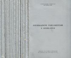 21 numeri in 19 fascicoli, ogni fascicolo diviso in due parti, I-Cronaca dei lavori parlamentari. II-Documentazione, numerazione pag.divisa ed ognuna continua, brossure editoriali morbide, argentate con titoli neri ai solo piatti anteriori, con sottile fi