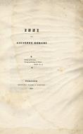 Firenze, Tipografia Borghi e Compagni, 1831, in-8, br. edit con fregi tipografici (mancanze al dorso), pp. 120, [2]. Una lievissima, ma ampia gora interessa quasi tutto il volume. Legatura allentata. Prima edizione.
