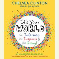 Get Informed! Get Inspired! Get Going! In a book that tackles the biggest challenges facing us today, Chelsea Clinton combines facts, charts, photographs and stories to give readers a deep understanding of the world around them—and how anyone can make a difference. With stories about children and teens who have made real changes big and small—in their families, their communities, in our country and across the world—this book will inspire readers of all ages to do their part to make our world a better place. In addition to informing and inspiring readers about topics including Poverty, Homelessness, Food Insecurity, Access to Education, Gender Equality, Epidemics, Non-Communicable Diseases, Climate Change, and Endangered Species, this book encourages everyone to get going! With suggestions and ideas for action, Chelsea Clinton shows readers that the world belongs to every single one of us, and every one of us counts. You can make a difference. You can make a change. It’s your world. *Includes Bonus PDF with Photo & Charts