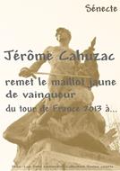 Jérôme Cahuzac remet le maillot jaune de vainqueur du tour de France 2013 à... Sans humour, les organisateurs de cette grande boucle cycliste périraient de désespoir. Ce centième tour s'annonçait bien, comme les précédents d'ailleurs, plus blanc que blanc... sans dopage ni affaire. Même la Corse était d'accord ! Et boum. Enfin et boum, façon de causer... La veille du départ, Lance Armstrong vraiment mauvais joueur refuse de participer à l'opération sourires et balance « Le Tour de France ? Impossible de gagner sans dopage. » Donc il fallait bien essayer de dédramatiser. Et c'est là que l'option humour, envisagée dès le 4 juin selon nos informations, fut distillée, en off... La meilleure manière de faire le buzz quand on possède de nombreux journalistes dans ses relations. Puisqu'on ne peut jamais croire un cycliste, Jérôme Cahuzac le récompensera ! Non, il ne s'agit pas du "prix Cahuzac" décerné à Fripouille, un hameau de plus en plus visité dans la région Midi-Pyrénées mais bien du maillot jaune... Sénecte ( http://www.senecte.net ) observe ainsi avec humour la politique et le sport. Présenté sur http://www.commentaire.info versant Jérôme Cahuzac