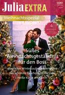 SÜSSES WEIHNACHTSGESTÄNDNIS FÜR DEN BOSS von MICHELLE SMART Fest der Liebe unter dem Polarstern? Als Hotelmanagerin Lena ihrem sexy Boss Konstantinos Siopis die süßen Folgen ihres One-Night-Stands gesteht, verlangt er, dass sie die Weihnachtstage mit ihm verbringt. Aus Pflichtgefühl? Oder kann sie den Eispanzer um sein Herz zum Schmelzen bringen? MAGISCHER WINTERZAUBER WIDER WILLEN von BRYONY TAYLOR Rot-weiße Zuckerstangen, Rentiere und Santa Claus: Verleger Scott hat für diesen Zauber nichts übrig! Für ihn bedeuten die Festtage nur Kommerz. Wie will Buchhändlerin Lucy ihn da zum Weihnachtsfan bekehren? Unmöglich! Doch jäh erwacht gefährlich romantische Sehnsucht in ihrer Nähe … DAS SCHÖNSTE GESCHENK IST DIE LIEBE von RACHAEL STEWART An Heiligabend heiratet Milliardär Aiden Monroe seine beste Freundin Elena. Natürlich nur, um den größten Wunsch seiner schwerkranken Mutter zu erfüllen! Aber warum prickelt es plötzlich so verführerisch, als er Elena zu einem Kuss vorm glitzernden Christbaum in die Arme nimmt? HEISSE KÜSSE AM KAMIN von JOSS WOOD Als Millie kurz vor den Feiertagen zu ihrem Noch-Ehemann Benedikt ins tief verschneite Reykjavik reist, will sie nur eins: die Scheidung! Doch ein Schneesturm schließt sie in seinem Haus ein. Stärker als das Feuer im Kamin knistert bald die ungewollte Anziehungskraft zwischen ihnen …