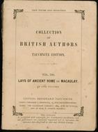 Libro vintage. Autore: Macaulay. Editore: Bernard Tauchnitz. Luogo: Parigi. Anno: 1851. Formato: in-8°. Pagg: 260. Legatura: brossura. Collana: Collection of british authors 198. Conservazione: discreta. Evidente segno del tempo con mancanza al dorso. Volume intonso. Testo in inglese
