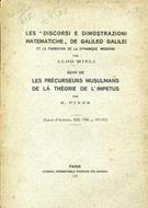 Les "Discorsi e Dimostrazioni matematiche" de Galileo Galilei et la formation de la dynamique moderne par Aldo Milei - Suivi de Les Précurseurs musulmans de la théorie de l'impetus par S. Pines (Extrait d'Archeion, XXI, 1938, p. 193 - 312)