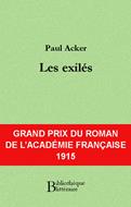 En 1915, le conflit pousse l’Académie française à saluer, à travers les prix littéraires qu’elle décerne, des écrivains morts au combat. Charles Péguy, un des premiers disparus, reçoit ainsi, à titre posthume, l’important Grand Prix Broquette-Gonin. Alain-Fournier, le Prix Jules Davaine. Et, parmi beaucoup d’autres lauréats, mais inaugurant pour l’ensemble de son œuvre le palmarès du Prix du roman, Paul Acker. Paul Acker est né le 14 septembre 1874. Il a donc quarante ans quand il meurt pour la France, près du front de Thann, le 27 juin 1915, dans un accident. Une centaine de kilomètres, à vol d’oiseau, séparent son début et sa fin. Mais, entre les deux, il a écrit, en particulier des romans. À défaut de rééditer son œuvre complète pour le centenaire de la création du Prix du roman, nous avons choisi de donner à lire Les exilés. En 1911, Paul Acker y ouvrait son cœur d’Alsacien et désignait la déchirure qui le blessait : quelle était encore l’identité d’une terre annexée par l’Allemagne en 1871 alors que ses habitants, ou du moins une partie d’entre eux, se sentaient Français ? Un livre très enraciné dans le territoire d’où vient son auteur et bien dans l’esprit de son époque.
