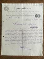 SOCIETÀ MUTUA DI ASSICURAZIONE CONTRO I DANNI DELLA GRANDINEEGUAGLIANZAMilano 2 Giugno 1910formato 22,5x28 cmin buono stato salvo segni di piega come da fotoE21935 . . . . . . .