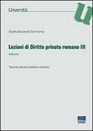 Il terzo volume delle Lezioni di Diritto privato espone semplicemente gli elementi istituzionali del diritto privato romano, seguendo il modello delle Institutiones di Gaio, per offrire agli studenti la conoscenza del vocabolario di base del linguaggio giuridico, i concetti fondamentali e gli istituti caratterizzanti i diversi settori del diritto privato romano. L'esposizione strutturata secondo la tradizionale ripartizione: personae, res (diritti reali, successioni, obbligazioni) e actiones (oggi diremmo tutela dei diritti) è condotta in una prospettiva storica e - pur non trascurando di sottolineare i ragionamenti logici e l'elaborazione concettuale sottesi alle soluzioni via via offerte dai giuristi o dal legislatore, e di accennare ai rapporti con il diritto attuale - non utilizzerà concetti, categorie e terminologia proprie della moderna dogmatica.