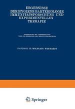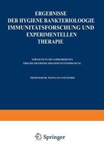 Ergebnisse der Hygiene Bakteriologie Immunitätsforschung und experimentellen Therapie: Fortsetzung des Jahresberichts Über die Ergebnisse der Immunitätsforschung