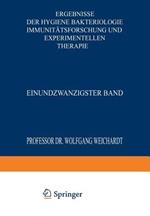 Ergebnisse der Hygiene Bakteriologie Immunitätsforschung und Experimentellen Therapie: Einundzwanzigster Band
