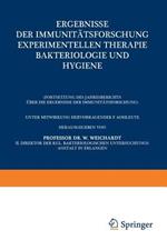 Ergebnisse der Immunitätsforschung Experimentellen Therapie Bakteriologie und Hygiene: (Fortsetzung des Jahresberichts Über die Ergebnisse der Immunitätsforschung)