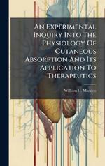 An Experimental Inquiry Into The Physiology Of Cutaneous Absorption And Its Application To Therapeutics