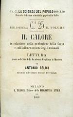 Il calore in relazione colla produzione della forza e coll'alimentazione degli animali. Lettura