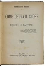 COME DETTA IL CUORE - Ricordi e fantasie - Prina Benedetto - Cogliati Editore - 1887