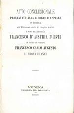 Atto conclusionale presentato alla R. Corte d'appello in Modena all'udienza delli 11 luglio 1865 a nome dell'Arciduca Francesco D'Austria d'Este in causa col principe Francesco Carlo Augusto di Crouy-Chanel