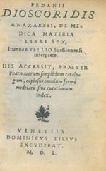 De medica materia libri sex, Ioanne Ruellio Suessionensi interprete. His accessit, praeter pharmacorum simplicium catalogum, copiosus omnium ferme medelaru(m) sive curationum index. Â Â Â Â Â Â