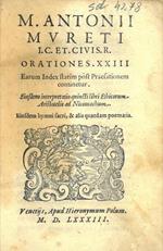M. Antonii Mureti I.C. Et. Civis. R. Orationes. XXIII. Earum index statim post praefationem continetur. Eiusdem interpretatio quincti libri Ethicorum Aristotelis ad Nicomachum. Eiusdem hymni sacri, & alia quaedam poematia