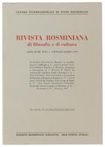 RIVISTA ROSMINIANA DI FILOSOFIA E DI CULTURA. Fasc. I/1999
