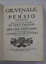 Giuvenale, e Persio spiegati Con la dovuta Modestia in versi volgari. Ed illustrati con varie annotazioni dal Conte Camillo Silvestri da Rovigo