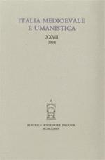 Italia medioevale e umanistica. Vol. 27