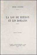 Titolo: La loi de Hieron et les romainsAutore: Carcopino JeromeEditore: "L'erma" di BretschneiderData: 1965Roma, in francese, bross. edit. con titoli, appunti a margine e sottolineature a matita, piccole rotture alle unghiature e lieve brunitura in cop., ristampa anastatica dell'edizione Paris, 1914